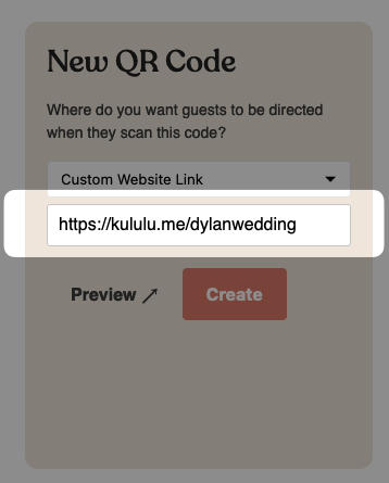 Select Custom Website Link as the destination, and enter the link you copied earlier, then follow the rest of the steps to create your QR code